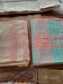 Bianca in cotone, ricamata a mano, pochissimo usata, ma in perfetto stato, pulita e senza difetti, euro 160. Le due tovaglie colorate, invece, sono nuove, ancora inamidare, in lino. Tutte con dodici tovaglioli. Chi fosse interessato riceverà le misure esatte
