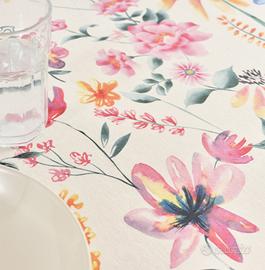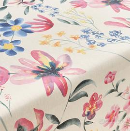 Tovaglia antimacchia Muare in cotone 100%, resinato e completamente impermeabile, non usare prodotti abrasivi, si pulisce con un panno umido, lavare a 30 gradi, non occorre stirarla, se necessario stirare a rovescio.