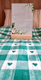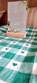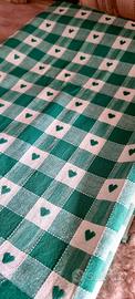 Vendo tovaglia artigianale per tavolo rettangolare, misura 190x135 cm. Realizzata a mano da mia zia con tessuto a quadretti verde e bianco, ogni quadretto decorato con un cuore centrale. Ottima per mise en place eleganti o ambientazioni country-chic. Rimasto disponibile solo 1 pezzo di 2 che erano in vendita (la seconda è già stata venduta). Prezzo: €25 Ritiro in zona tburtina e piu precisamente in via tancredi cartella