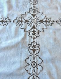 Tovaglia bianca da 8 posti ricamata a punto croce con filo