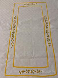 Vendo tovaglia bianca con ricami e bordo giallo con 8 tovaglioli. Misure: 2,15 cm x 1,45 cm