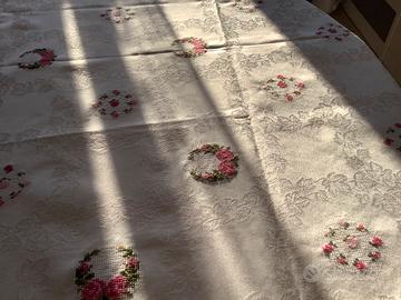 una bella tovaglia degli anni 50, mai usato. ricamata a mano con la pazienza...di una volta. Un bel tessuto solido e prezioso in un cotone molto resistente: primavera in tavola ! misura 190 x 190cm