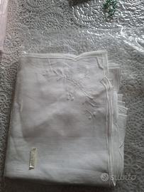 Vendo tovaglia da tavola bianca tonda misura 72×72 mai usata ancora imbustata puro cotone euro 10