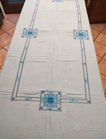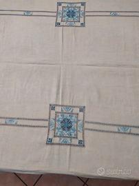 Tovaglia celeste ricamata a mano in Puro Lino - PREZZO TRATTABILE -