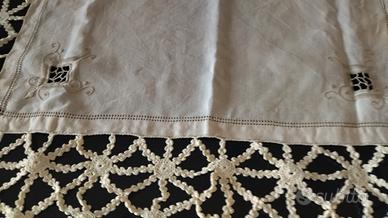 vendo tovaglia copri tavola primo 900, quadrata, in lino con grande bordo, misura cm82 x cm 82, nessuna rottura, adatta per tavolo rotondo o quadrato, prezzo 65 euro