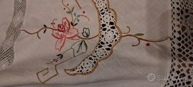 Deliziosa e pregiata tovaglia in lino ricamata a a mano, purtroppo non la uso ed è un peccato tenerla nell'armadio, diametro cm 160. €80 Ardea