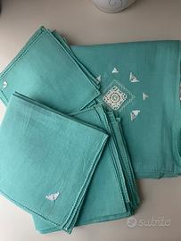 Tovaglia con tovaglioli e tovagliolini da te proveniente da corredo di famiglia, macchiette del tempo, da rinfrescare e stirare. 252x154