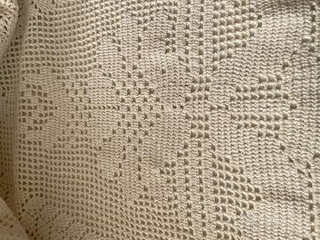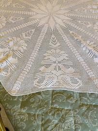 Bellissima tovaglia esagonale fatta interamente a mano , trovata nel baule della nonna , qualche lieve rattoppo quasi invisibile , e’ antica !