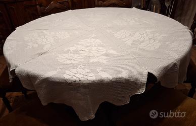 Tovaglia / copritavolo rotondo ad uncinetto fatto a mano in cotone