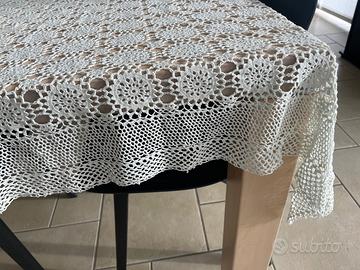 Tovaglia vintage rettangolare fatta a mano con uncinetto in cotone bianco. Misure circa 240 cm per 160 cm. No spedizione
