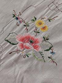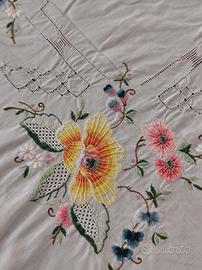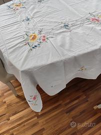 bellissima e ricamata magistralmente questa tovaglia da 12 in lino.