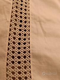 grande tovaglia ricamata a punto croce e con intagli all'uncinetto. Nuova mai utilizzata. Lavorata con maestria. misure 260 x 170 cm. tovaglioli di 38 x 38 cm.