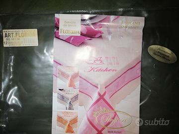 Tovaglia da tavola con 12 tovaglioli. Made in Italy. Le misure sono indicate nella foto. Nuovissima. Nella sua confezione originale.