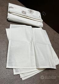 Tovaglia originale Mulino Bianco – Barilla, colore bianco panna con delicati motivi marroni a tema campagna/fiori e logo del famoso Mulino.