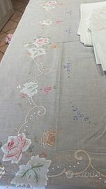 Tovaglia da tavola in cotone con disegno a rilievo, nuova mai usata, senza macchie, completa di 12 tovaglioli La tovaglia misura cm 170/260