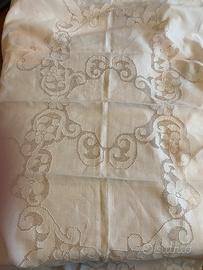 Tovaglia da tavola in lino ricamo artigianale sfilato siciliano, nuova, mai usata Misura 260x172 cm