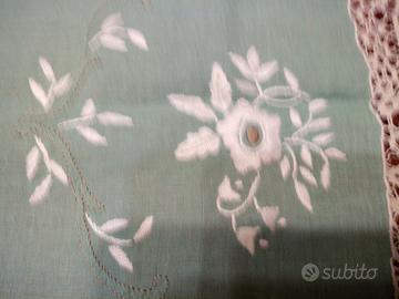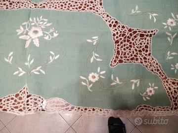 tovaglia di lino verde ricamata a mano negli anni 50 con 4 tovaglioli dimensioni cm 90x90