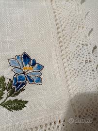 tovaglia da the con ricamo e pizzo misure tovaglie cm 105 x 105 completa di 2 tovaglioli misure cm 20 x 20 nuova con cartellino