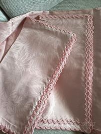 Pregiata tovaglia con bordura smerlata nuova x 12 tovaglioli