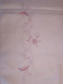 tovaglia di pregiato bisso rosa, finemente ricamata per 12 persone, come nuova misura 260x 240