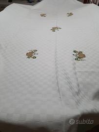 E' impreziosita da ricami e completata da una balza di colore verde.