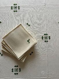 Vendo elegante tovaglia con 12 tovaglioli coordinati. Tessuto color avorio con ricami verdi delicati distribuiti su tutta la superficie, dallo stile classico e raffinato.