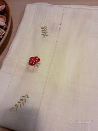tovaglia 6 posti con 6 tovaglioli disegno frutta lavabile in lavatrice senza stiro