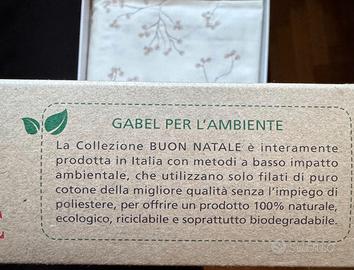 Gabel Tovaglia Natale Etienne Un raffinato ed elegante ricamo natalizio con Etienne, la nuova tovaglia con tovaglioli della collezione Buon Natale di Gabel 1957 ricamato con filato lurex su panama di puro cotone. Grazie alla sua stampa versatile, è perfetta per il pranzo natalizio ma anche per un elegante cena romantica. La Collezione BUON NATALE è interamente prodotta in Italia con metodi a basso impatto ambientale, che utilizzano solo filati di puro cotone della migliore qualità senza l'impiego di poliestere, per offrire un prodotto 100% naturale, ecologico, riciclabile e biodegradabile.