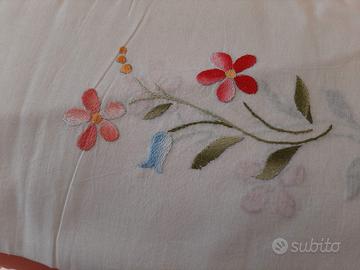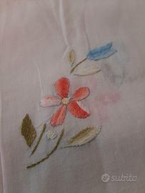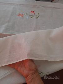 Vendesi tovaglia in lino antico ricamata a mano totalmente nuova. Ottima anche come tappeto da tavolo. Misura 220 cm per 130 cm Prezzo richiesto 50 euro astenersi perditempo disponibile anche a spedire