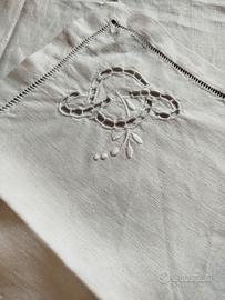 tovaglia in lino ricamata a mano con 13 tovaglioli