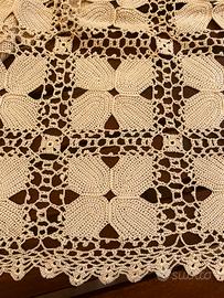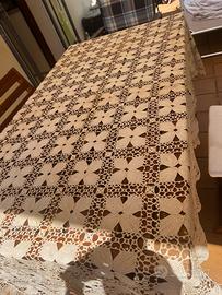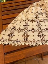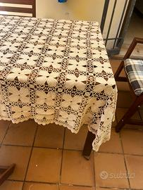 Tovaglia di pizzo eseguito a mano ad uncinetto piu di 40 anni fa da mia nonna. Filato di pregio egiziano. Colore ecru mai usata e conservata con cura come corredo. Vendo per inutilizzo e perchè non adatta al