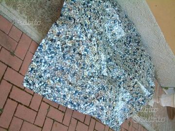 Telo in plastica raffigurante ciotoli di fiume. Dimensioni 180 x 140 cm circa. Utilizzabile come ampia tovaglia o altri usi. Nuovo mai utilizzato.