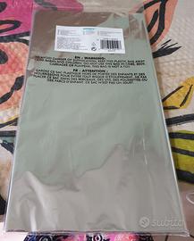 In argento lucido, sembra uno specchio, acquistata per festeggiare le nozze d'argento (ma ne è avanzata una), sottile ma resistente, lavabile, misura mt. 1,37 × 2,74, riutilizzabile, impermeabile, NUOVA, ancora chiusa nella confezione.