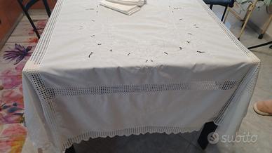 Vendesi, come da foto, tovaglia rettangolare da 12 in puro lino e ricamata a mano.....nuova....mai usata...contatto 3475344739