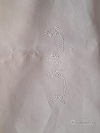 Vendo preziosa tovaglia in lino e pizzo di Cantù, misura 260x160 cm., con 12 tovaglioli. Interamente realizzata a mano. Il pizzo, realizzato con punto Mimosa, è attaccato a macchina alla tovaglia per consentire un lavaggio più semplice. Colore bianco panna/bianco avorio. Disponibile per altre foto più dettagliate e con luce migliore, a interessati. Visibile a Milano o Cantù
