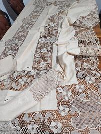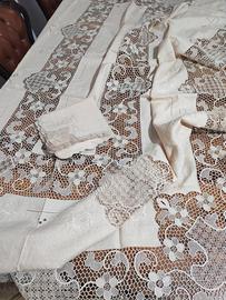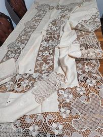 Bellisima tovaglia in lino, con 12 tovaglioli, ricamato a mano. Misura 262x165 Ideale per arredare il vostro tavolo di pasqua Nuova Vendo a250 euro