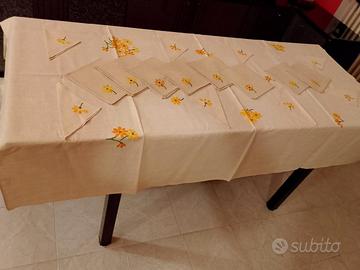vendo in ottime condizioni in lino puro nuove mai usati tovaglia lunghezza 1,76 cm larghezza 1,24 cm con 16 tovaglioli , 8 con 19x18cm ,8 con 40x39cm colore panna , 50 euro , 3889840657