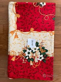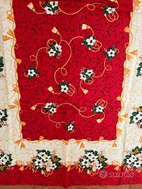 Tovaglia natalizia elegante in 100% cotone, perfetta per decorare la tavola durante le feste. Sfondo rosso con dettagli floreali bianchi, verdi e dorati, ideale per creare un’atmosfera calda e accogliente. In ottime condizioni, senza difetti. Spedisco in giornata per consegna rapida!