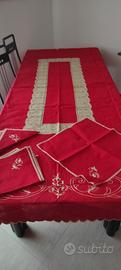 tovaglia natalizia nuova mai usata misura 160 * 260 puro cotone ricamificio Fiorentino più 12 tovaglioli