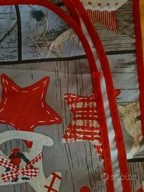 tovaglia natalizia antimacchia,per 12, in poliestere. usata pochissimo. con simpatiche immagini natalizie. molto carina