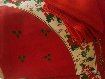 Vendo tovaglia natalizia rotonda, per 6 persone come da foto. Diametro 1,80