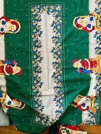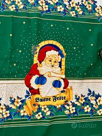 Tovaglia natalizia in 100% cotone, ideale per decorare la tavola durante le feste. Sfondo verde con bordi floreali e simpatici Babbi Natale accompagnati dalle scritte “Buon Natale” e “Buone Feste”. Perfetta per creare un’atmosfera accogliente e festiva. In ottime condizioni, senza difetti. Spedisco in giornata per consegna rapida!