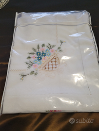 Tovaglia nuova, ancora confezionata in puro cotone con ricami Fiorentini. Misure : 220 x 140 completa di 8 tovaglioli. Ritiro a mano a Pieve Emanuele oppure spese di spedizione a carico dell'acquirente