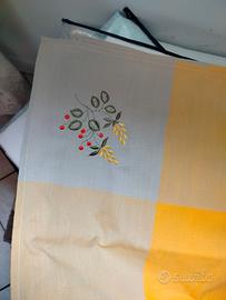 Tovaglia in cotone per 12 nei colori ocra senza tovaglioli. Nuova confezionata .Misura standard come da tovaglia per 12.Prezzo regalo 23 euro