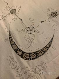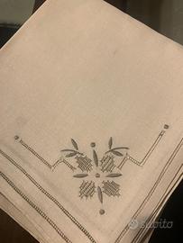 Tovaglia per tavolo rotondo con 8 tovaglioli color panna chiaro e ricami écru in cotone muova euro 30,00