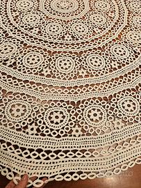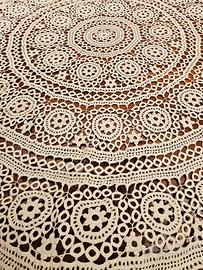 Tovaglia in pizzo motivo uncinetto bianca, rotonda diametro cm 175. Un capo vintage, come nuova.