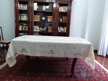 Tovaglia pregiata primi novecento in lino riccamente ricamata a mano.