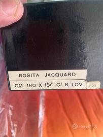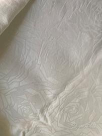Tovaglia quadrata bianca con 8 tovaglioli cm 180x180 marca Missoni. Il tessuto presenta un motivo a rose stilizzate tono su tono. Articolo nuovo mai utilizzato si presenta su scatola originale.