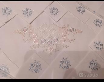 tovaglia ricamata con 12 tovaglioli