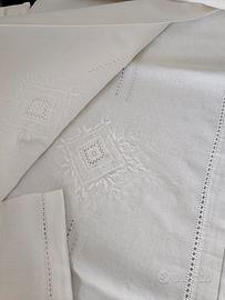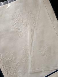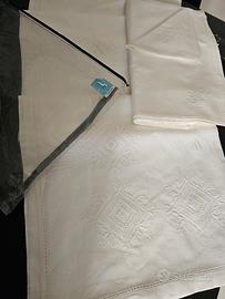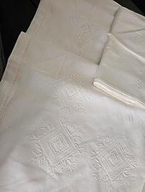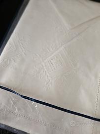 NON SPEDISCO CON POSTE ITALIANE Tovaglia rettangolare in lino lino ricamata a mano a punto antico. Nuova. Misura 180x270. 12 tovaglioli 40x40.